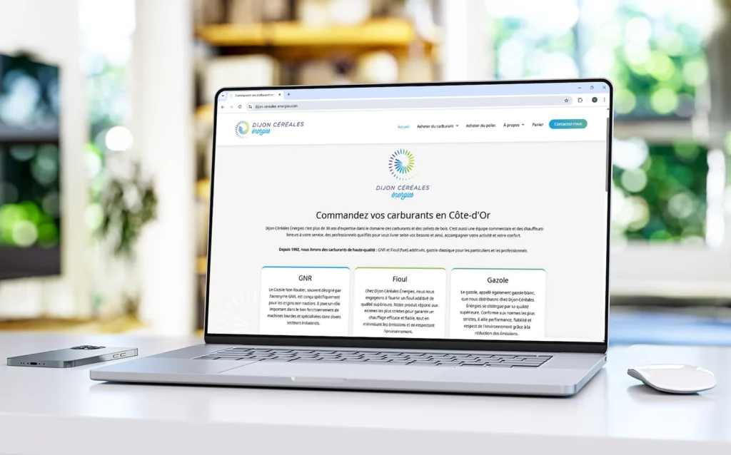 Nous avons accompagné Dijon Céréales Énergies, marque du Groupe Coopératif Dijon Céréales, spécialisée dans la distribution de carburants et de pellets de bois. Le site permet aux particuliers et professionnels en Côte-d’Or de commander facilement et en toute sécurité leurs carburants